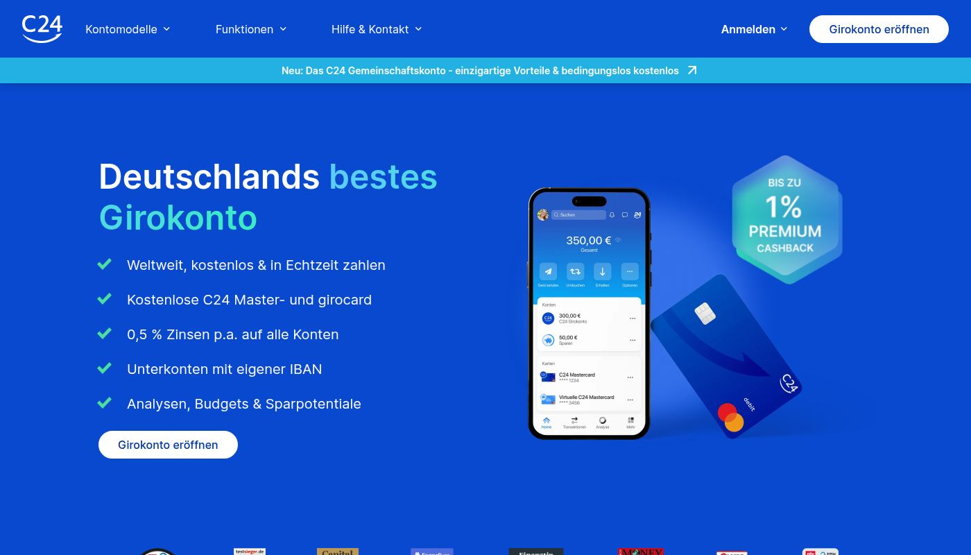 C24 Bank offers a comprehensive digital payment solution through its mobile banking platform. Users can conduct transactions using the C24 Mastercard and girocard, supporting contactless and mobile payments, real-time transfers, and virtual cards for online purchases.