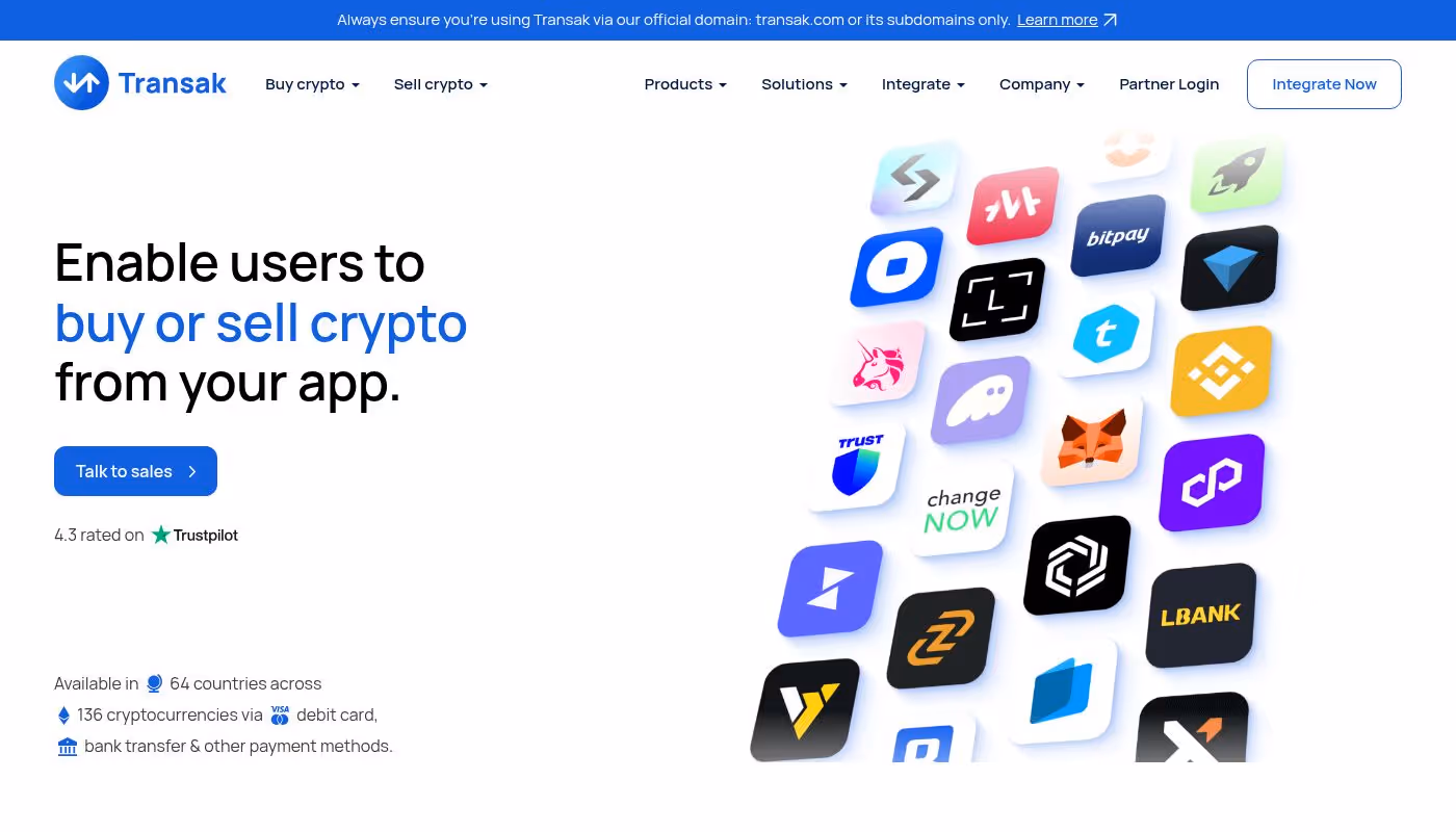 Transak is a web3 onboarding infrastructure provider that offers fiat-to-crypto and crypto-to-fiat gateway solutions. It enables users to buy and sell over 130 crypto assets across more than 125 countries using traditional payment methods.